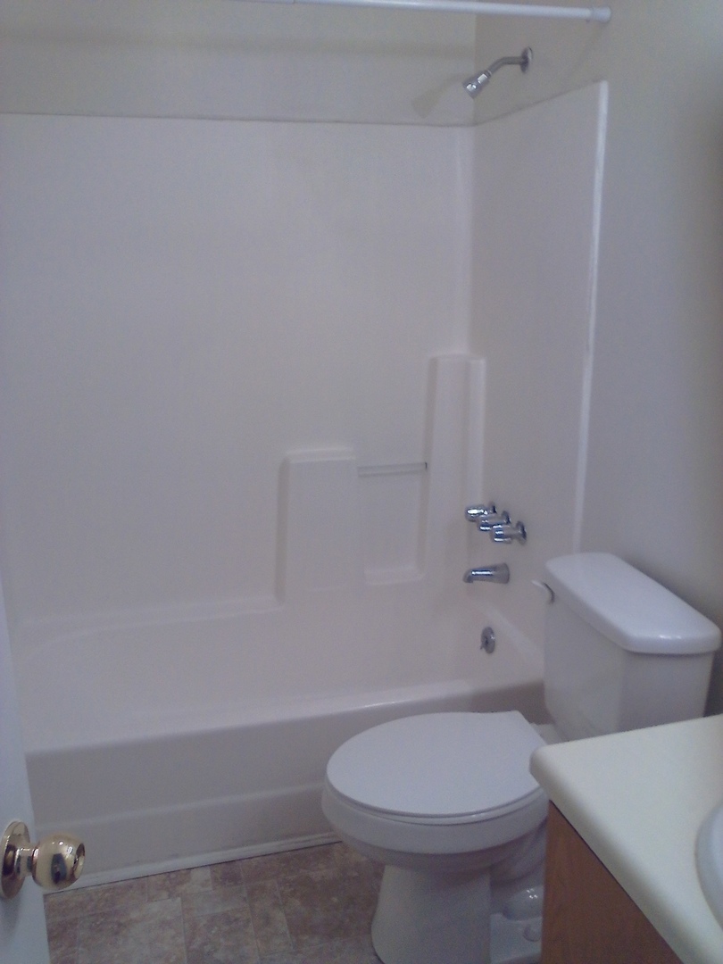 2 Bedroom, one bath with eat in kitchen, and large walk in closet in master bedroom. Unit includes stove, refrigerator, dishwasher and washer/dryer hookups. Lawn care is included in rent. Unit has back porch with a locked 5'8 x 4'3' storage area. Wood look vinyl flooring in living room, kitchen and baths