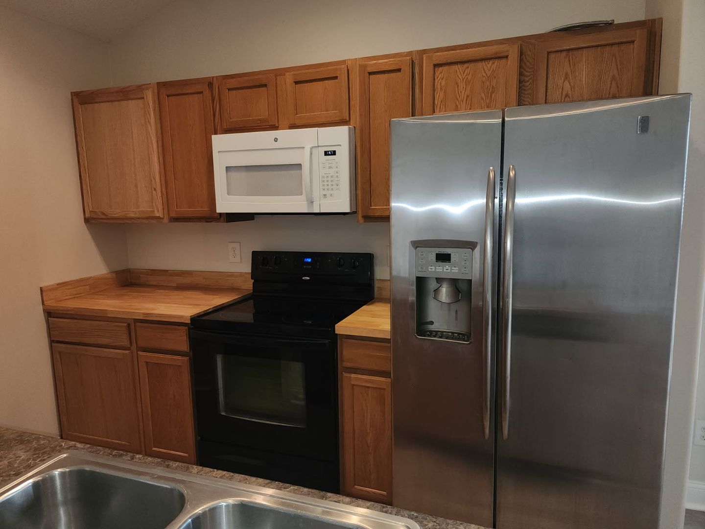 Welcome to this charming 2-bedroom, 2-bathroom home located in the vibrant city of New Bern, NC. This home boasts a galley style kitchen complete with all appliances and breakfast bar, perfect for those morning meals or casual dining. The open concept floor plan, enhanced by cathedral ceilings, creates a spacious and inviting atmosphere. The home also features a convenient laundry closet located in the hallway. The primary bedroom is a true retreat, complete with a walk-in closet and a stand-alone shower. The second bedroom is not to be overlooked, featuring a stunning Palladian window that allows for an abundance of natural light. Sliding glass doors lead out to a private patio, offering a perfect spot for outdoor relaxation. This tri-plex home seamlessly combines functionality and style, making it a must-see. No pets please.