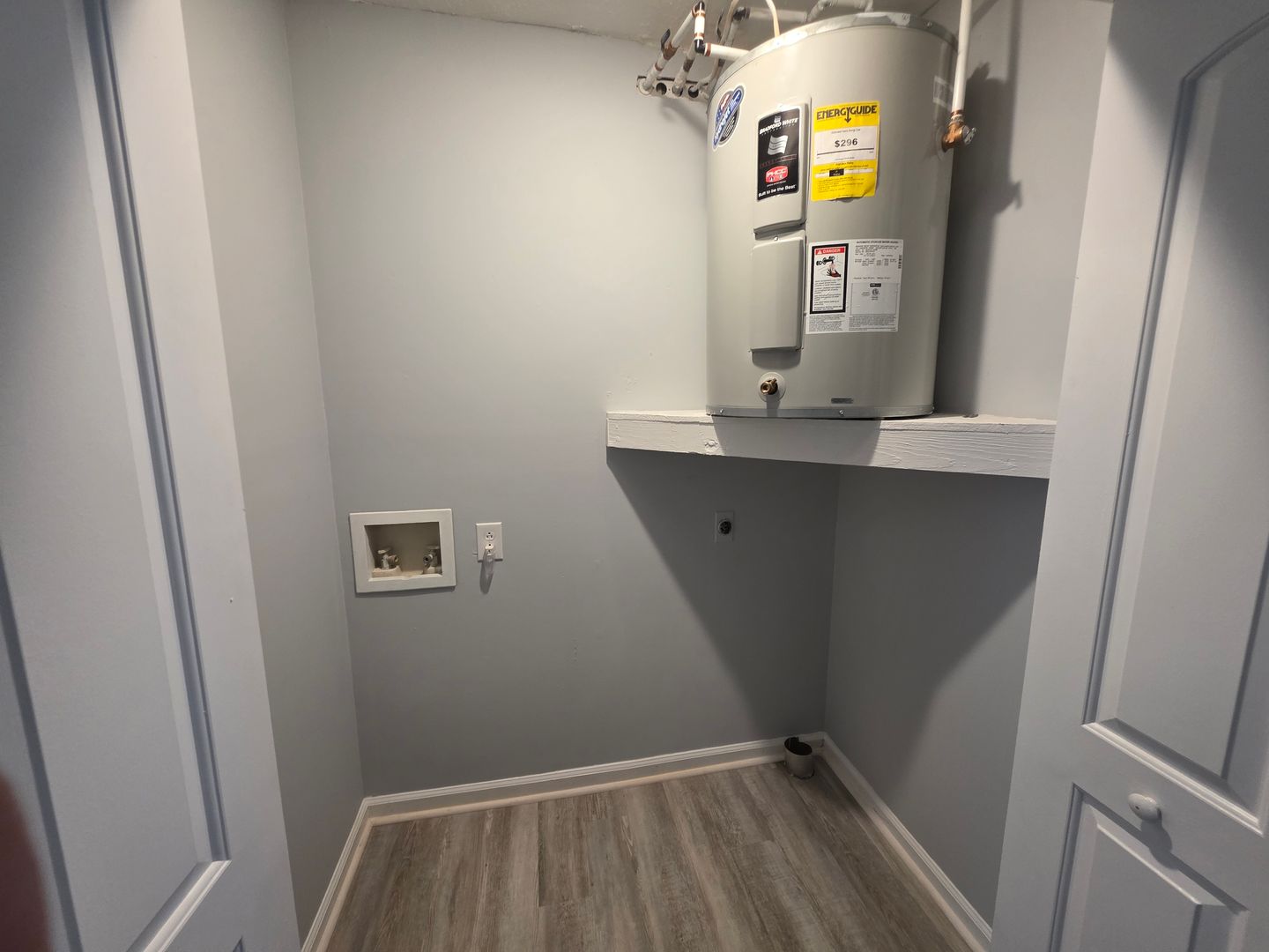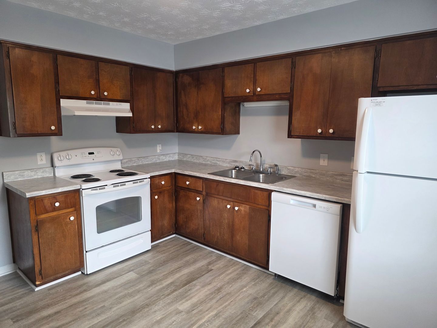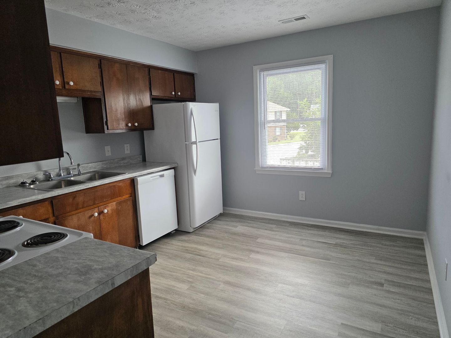 This unit is equipped with a stove, refrigerator, dishwasher, and washer/dryer hook-ups. Lawn care is included in rent.
