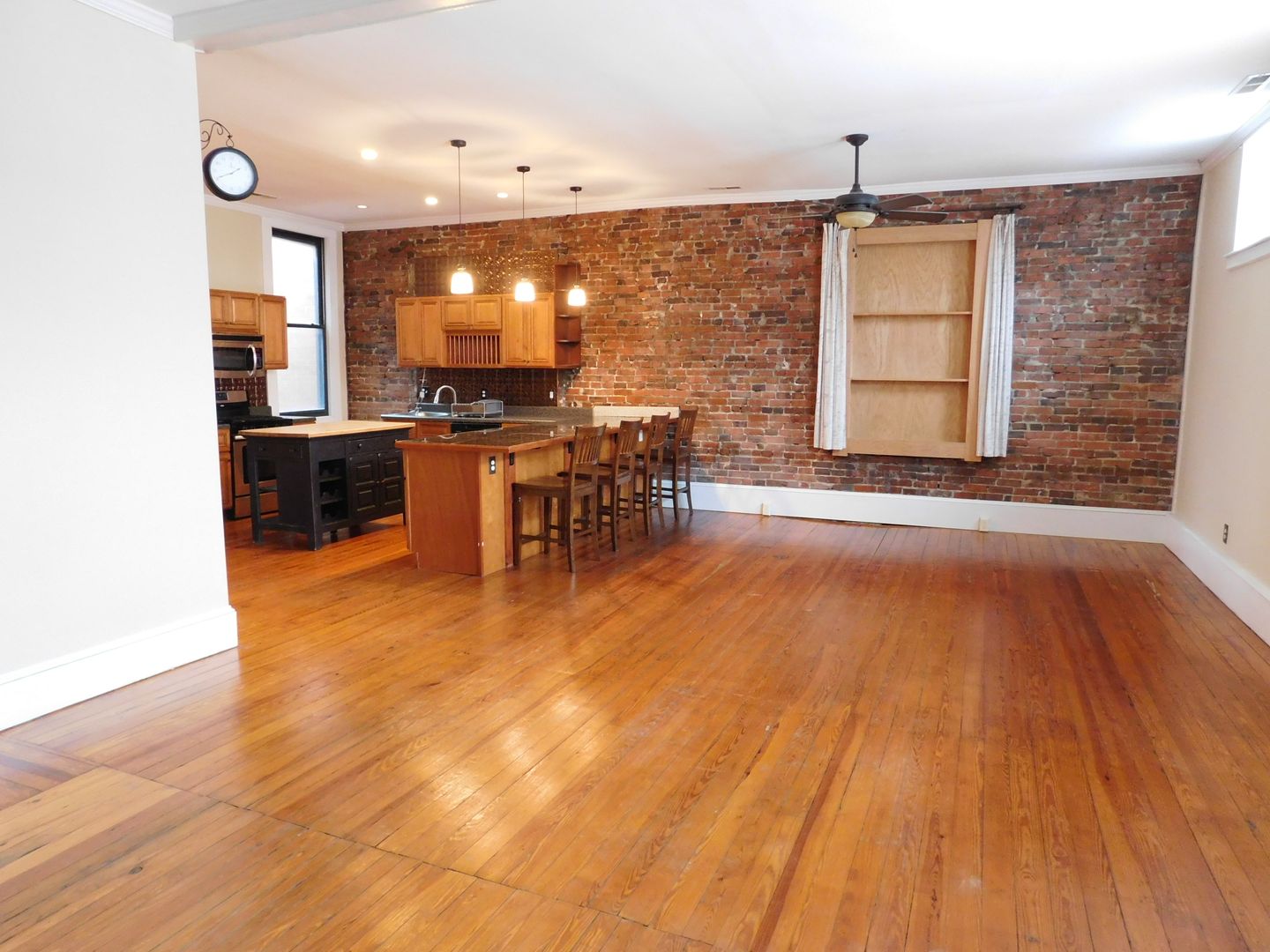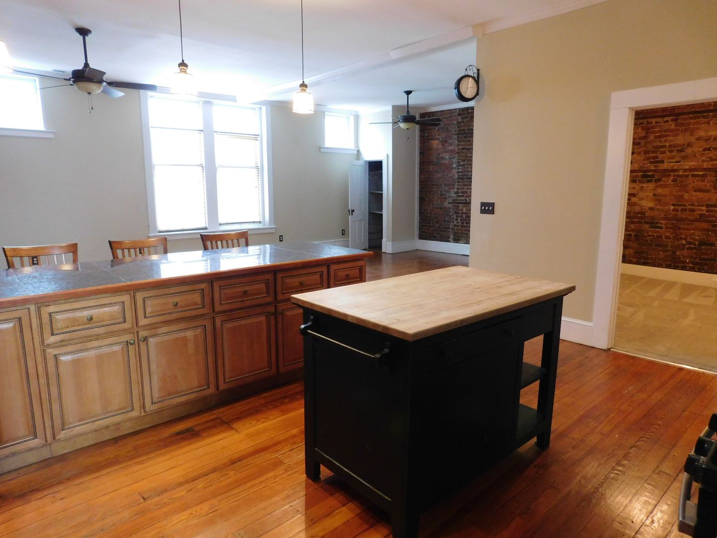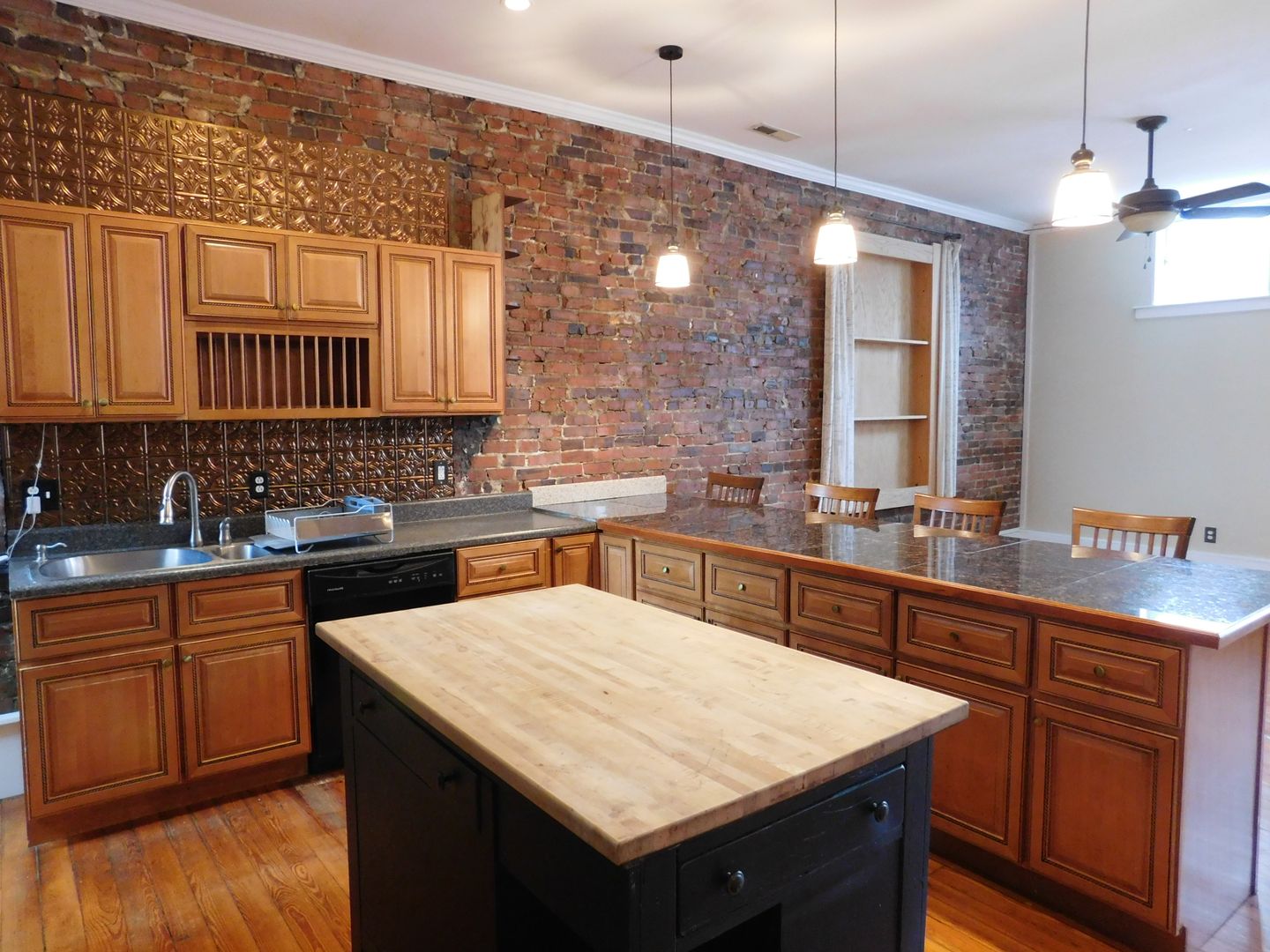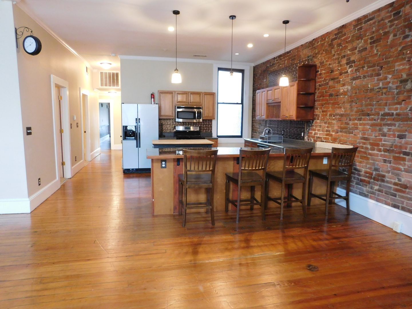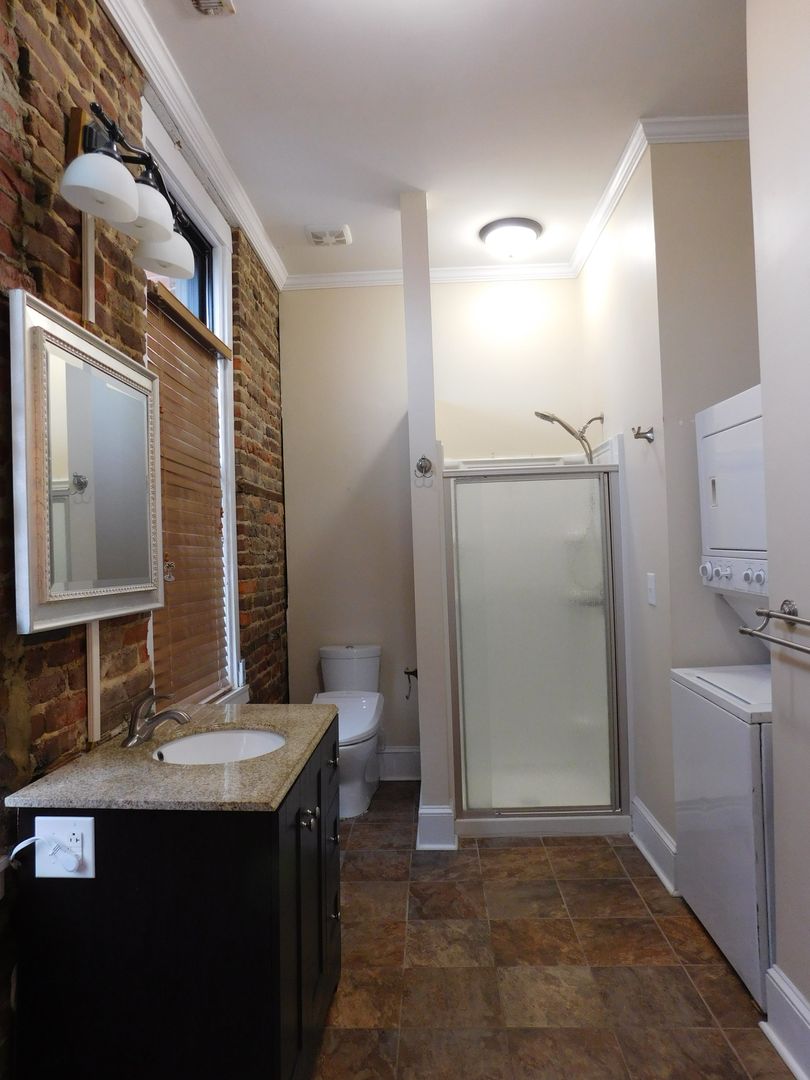 Welcome to 216 B Middle Street, a gem nestled in the heart of Historic Downtown New Bern, NC. This upstairs apartment with exposed brick walls, boasts three spacious bedrooms and two full bathrooms, making it a perfect place to experience the charm of downtown living. The home is a blend of classic and modern, with original hardwood floors and high ceilings that add a touch of elegance, while the upgraded kitchen cabinets, tiled and carpeted flooring offer a contemporary feel. The kitchen is a chef's dream, equipped with a dishwasher, microwave hood, and a side-by-side refrigerator with an icemaker. Stainless steel appliances, including a gas stove, add a sleek touch to the space. The breakfast bar with barstools provides a cozy spot for casual dining. The large open living room with corner fireplace and dining area featuring high ceilings is perfect for entertaining or simply relaxing after a long day. Extra storage space ensures you'll have room for everything you need. Experience the convenience and charm of downtown historic New Bern living at 216 B Middle Street. Piedmont Natural Gas included.